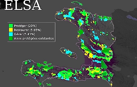 Dans le cadre de leur mission de protection, de gestion et de restauration del’environnement, le Ministère de l’Environnement et le Programme des Nations Unies pour le développement (PNUD) ont publié les résultats de la deuxième phase de « Cartographier la nature pour les personnes et la planète », un projet visant à identifier les aires essentielles au maintien de la vie en Haïti Essential Life Support Areas (ELSA). La première phase de ce projet a été lancé en mars 2021, avec une étude de validation du concept examinée par des experts nationaux lors d'un premier atelier organisé du 2 au 23 mars 2021. Téléchargez rapport du premier atelier : https://www.haitilibre.com/docs/Haiti-Consultation-1-Standard-file.pdf Les ELSA sont des aires essentielles à la conservation de la biodiversité critique et à la fourniture aux humains de services écosystémiques essentiels, tels que le stockage du carbone, la nourriture, l'eau douce, la filtration de l'eau et la réduction des risques de catastrophe. En utilisant cet outil pour traiter les données géospatiales, Haïti applique des méthodes scientifiques rigoureuses pour identifier les ELSA en fonction des priorités nationales et fixer des objectifs spécifiques pour leur protection, leur gestion et/ou leur restauration. Ce processus est l'une des façons dont le pays s'efforce de faire avancer les engagements nationaux et internationaux envers la Convention de la diversité biologique et le Programme 2030 pour le développement durable.