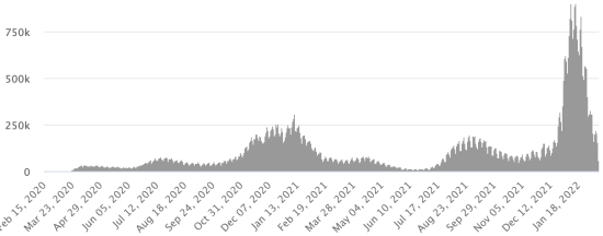 (Jour-1) Vaccination : 10,46 millards de doses de vaccin injectées (+20 millions de doses injectées en 24h. Mise à jour 14 février 2022 (dernières données disponibles). HAÏTI : Situation épidémiologique : Avertissement : Le Ministère de la Santé Publique et de la Population (MSPP) n’as pas rendu disponible après le 8 les données quotidiennes sur la situation du Covid-19 en Haïti. En conséquence, les données ci-dessous sur la situation en Haïti sont les dernières disponibles. Selon le Ministère de la Santé Publique, +32 nouveaux cas en 24h de Covid-19 et de ses variants auraient été confirmés en Haïti le 8 février 2022 (dernières données partielles disponibles) pour un total de 29,939 cas confirmés sur l’ensemble du territoire national (48,6% de femmes et 51,4% hommes), depuis le premier cas (19 mars 2020 https://www.haitilibre.com/article-30319-haiti-sante-origine-des-2-premiers-cas-de-covid-19-en-haiti.html ). Précédente mise à jour (+28 cas les 6-7 février 2022). Guérisons : 25,033 (+36 en 24h) Taux de guérison : 83,61% (+) Décès : 807 décès (+0) ( Taux de mortalité : 2,69% (-) 5ème vague (Omicron dominant) : Total de la 5ème vague (début 27 décembre 2021) s’élève à 3,944 cas confirmés et 41 décès Haïti : Tendance cas actifs : (moins guérisons et décès)