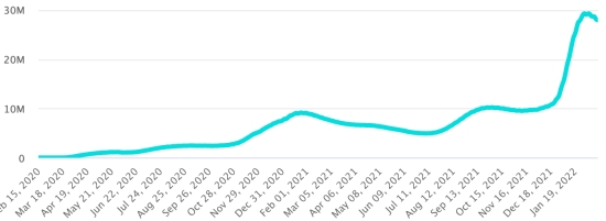 Test : 16,512,862 personnes testées depuis le premier cas (+20,578 en 24h) Vaccination : 18,261,836 doses de vaccin injectées depuis le 14 décembre 2020 date de la première injection (+21,772 doses en 24h), dernières données disponibles - MSSS en date du 17 février 2022) FRANCE : *Cas confirmés depuis le premier cas (24 janvier 2020) : 22,068,635 cas (+92,345 cas en 24h), précédent (+ 98,735) *Guérisons : 18,340,085 guérisons (+352,940 en 24h), précédent (+391,778) Taux national de Guérison : 83,10% (+) Décès : 136,142 décès (+287 en 24h), précédent (+276) Taux de mortalité : 0,61% (=) Cas Actifs : 3,592,408 (-260,882 en 24h), précédent (-293.709) Test : 240,847,561 (dernière donnée disponible 12 février 2022) France : Tendance cas actifs : (moins guérisons et décès)