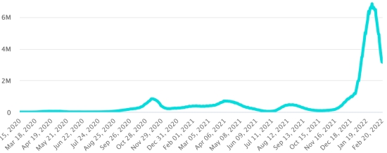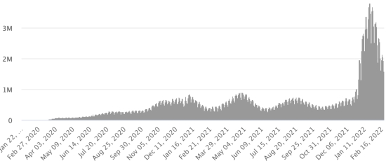 Vaccination : 550,56 millions de doses de vaccin injectées depuis le 14 décembre 2020 date de la première injection aux États-Unis (+880,000 doses en 24h). Mise à jour 21 février 2022 (dernières données disponibles).