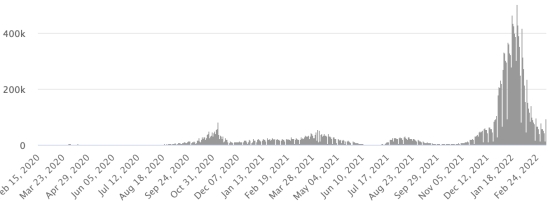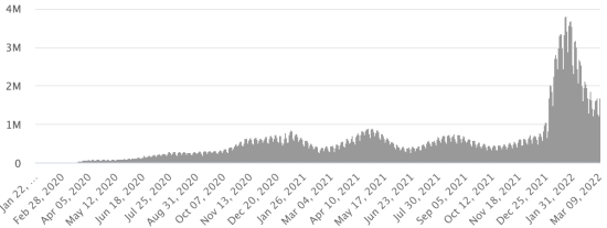 Vaccination : 555,99 millions de doses de vaccin injectées depuis le 14 décembre 2020 date de la première injection aux États-Unis (+240,000 doses en 24h). Mise à jour 9 mars 2022 (dernières données disponibles).