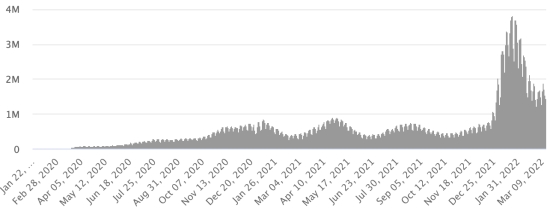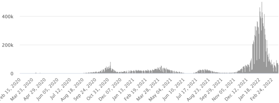 Vaccination : 557,30 millions de doses de vaccin injectées depuis le 14 décembre 2020 date de la première injection aux États-Unis (+200,000 doses en 24h). Mise à jour 14 mars 2022 (dernières données disponibles).