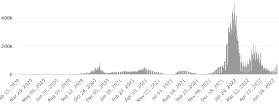 Vaccination : 12,02 millards de doses de vaccin injectées (+20 millions). (Dernières données disponibles). HAÏTI : Avertissement : Le Ministère de la Santé Publique et de la Population (MSPP) n’as pas rendu disponible après le 9 juin 2022 les données quotidiennes sur la situation du Covid-19 en Haïti. En conséquence, les données ci-dessous sur la situation en Haïti sont les dernières disponibles. Selon le Ministère de la Santé Publique, +50 nouveaux cas de Covid-19 et de ses variants auraient été confirmés en Haïti en date du 9 juin 2022 (dernières données partielles disponibles) pour un total de 31,054 cas confirmés sur l’ensemble du territoire national (48,7% de femmes et 51,3% hommes), depuis le premier cas (19 mars 2020 https://www.haitilibre.com/article-30319-haiti-sante-origine-des-2-premiers-cas-de-covid-19-en-haiti.html ). Précédente mise à jour (+41 cas en date du 6 juin 2022). Guérisons : 29,752 (+2) Taux de guérison : 95,80% (-) Décès : 837 décès (+0) Taux de mortalité : 2,69% (=) Dépistage depuis le début de la pandémie : 204,962 tests depuis le 19 mars 2020 (+594 en 3 jours) un nombre de tests insuffisant statistiquement pour être représentatif de la situation sanitaire, ce qui se traduit par un nombre de cas confirmés quotidiennement largement sous-évalué de l’avis des spécialistes de la santé. TOP 5 des Communes les plus touchées dans l’Ouest (2022) : Delmas : 801 (+6) ; Pétion-ville 646 (+7) ; Port-au-Prince 431 (+2) ; Tabarre 328 (+8) ; Croix-des-Bouquets 264 (+4) Cas confirmés par département (2022 / 2021 / 2020) : Ouest : 2022 : 2,748 (+) cas ; (2021 : 9,890) ; (2020 : 6,945 cas) Nord : 2022 : 296 (+) cas ; (2021 : 664) ; (2020 : 677 cas) Centre : 2022 : 291 (=) cas ; (2021 : 1,001) ; (2020 : 508 cas) Artibonite : 2022 : 194 (=) cas ; (2021 : 855) ; (2020 : 593 cas) Nord-Est : 2022 : 172 (+) cas ; (2021 : 404) ; (2020 : 314 cas) Sud-Est : 2022 : 321 (+) cas ; (2021 : 768) ; (2020 : 274 cas) Sud : 2022 : 220 (+) cas ; (2021 : 891) ; (2020 : 262 cas) Nord-Ouest : 2022 : 286 (+) cas ; (2021 : 383) ; (2020 : 229 cas) Grand'Anse : 2022 : 222 (+) cas ; (2021 : 861) ; (2020 : 176 cas) Nippes : 2022 : 79 (+) cas ; (2021 : 249) (2020 : 149 cas) Décès cumulés par département (2022-2021) : Ouest : 298 décès (2020 : 104 décès) Nord : 54 décès (2020 : 34 décès) Centre : 79 décès (2020 : 13 décès) Artibonite : 42 décès (2020 : 39 décès) Nord-Est : 7 décès (2020 : 6 décès) Sud : 51 décès (2020 : 6 décès) Sud-Est : 15 décès (2020 : 9 décès) Nord-Ouest : 15 décès (2020 : 12 décès) Grand'Anse : 7 décès (2020 : 13 décès) Nippes : 27 décès (2020 : 5 décès) Répartition des décès par âge (depuis le début de l’épidémie) : 0-9 ans : 15 décès 10-19 ans : 10 décès 20-29 ans : 31 décès 30-39 ans : 56 décès 40-49 ans : 80 décès 50-59 ans : 135 décès 60-69 ans : 188 décès (+1) 70-79 ans : 184 décès 80 ans et plus : 138 décès (+1) Vaccination : 188,584 haïtiens (1,62% de la population) +3,615 en 13 jours ont reçu une 1ère dose de vaccin depuis le 16 juillet 2021 date de la première injection à travers 149 centres de vaccinations ouverts et 132,177 haïtiens sont entièrement vaccinés (2 doses, 1,13% de la population) +2,513 en 13 jours. Mise à jour 7 juin 2022 dernières informations disponibles (source MSPP). Liste des 149 Centres de vaccination ouverts en Haïti (et horaires) par département : (mise à jour 20 octobre 2021, dernières informations disponibles) DIASPORA : Situation épidémiologique : USA : *Cas depuis le premier cas (29 février 2020) : 87,759,180 cas (+209,617 en 24h), la veille (+124,717) *Guérisons : 83,505,111 guérisons (+165,431 en 24h), la veille (+93,882) Taux national de Guérison : 95,15% (-) Décès : 1,037,664 (+1,181 en 24h), la veille (+399) Taux de mortalité : 1,18% (=) *Cas actifs (moins décès et guérisons) : 3,216,405 (+43,005 en 24h), la veille +30,436) USA : Nombre de cas confirmés quotidiens :