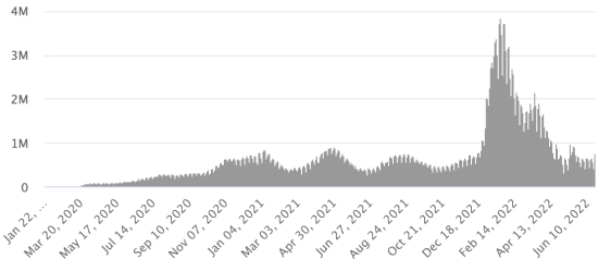 Jeudi 23 juin 2022 le nombre de personnes contaminées dans le monde par le coronavirus Covid-19 et ses variants depuis le début de la pandémie (11 mars 2020) s’élève à 546,714,692 cas (+847,071 en 24h), la veille (+917,230)