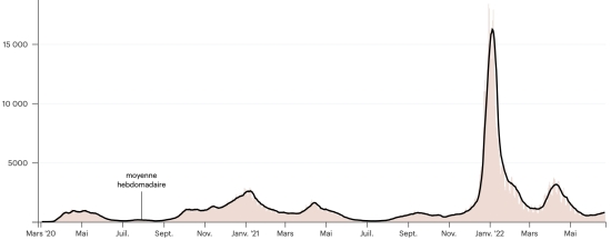 Vaccination : 12,15 millards de doses de vaccin injectées (+50 millions de doses). (Dernières données disponibles). HAÏTI : Selon le Ministère de la Santé Publique, +80 nouveaux cas de Covid-19 et de ses variants auraient été confirmés en Haïti en date du 25 juin 2022 (dernières données partielles disponibles) pour un total de 31,550 cas confirmés sur l’ensemble du territoire national (48,7% de femmes et 51,3% hommes), depuis le premier cas (19 mars 2020 https://www.haitilibre.com/article-30319-haiti-sante-origine-des-2-premiers-cas-de-covid-19-en-haiti.html ). Précédente mise à jour (+60 cas en date du 23 juin 2022). Guérisons : 29,862 (+7) Taux de guérison : 94,64% (-) Décès : 837 décès (+0) Taux de mortalité : 2,65% (=) Dépistage depuis le début de la pandémie : 208,446 tests depuis le 19 mars 2020 (+480 en 48h) un nombre de tests pour l’ensemble du territoire national, insuffisant statistiquement pour être représentatif de la situation sanitaire, ce qui se traduit par un nombre de cas confirmés quotidiennement largement sous-évalué de l’avis des spécialistes de la santé. TOP 5 des Communes les plus touchées dans l’Ouest (2022) : Delmas : 884 (+10) ; Pétion-ville 704 (+14) ; Port-au-Prince 448 (+5) ; Tabarre 384 (+3) ; Croix-des-Bouquets 313 (+4) Cas confirmés par département (2022 / 2021 / 2020) : Ouest : 2022 : 3,041 (+) cas ; (2021 : 9,890) ; (2020 : 6,945 cas) Nord : 2022 : 316 (+) cas ; (2021 : 664) ; (2020 : 677 cas) Centre : 2022 : 299 (=) cas ; (2021 : 1,001) ; (2020 : 508 cas) Artibonite : 2022 : 216 (+) cas ; (2021 : 855) ; (2020 : 593 cas) Nord-Est : 2022 : 205 (+) cas ; (2021 : 404) ; (2020 : 314 cas) Sud-Est : 2022 : 330 (=) cas ; (2021 : 768) ; (2020 : 274 cas) Sud : 2022 : 260 (+) cas ; (2021 : 891) ; (2020 : 262 cas) Nord-Ouest : 2022 : 318 (+) cas ; (2021 : 383) ; (2020 : 229 cas) Grand'Anse : 2022 : 231 (=) cas ; (2021 : 861) ; (2020 : 176 cas) Nippes : 2022 : 109 (+) cas ; (2021 : 249) (2020 : 149 cas) Décès cumulés par département (2022-2021) : Ouest : 298 décès (2020 : 104 décès) Nord : 54 décès (2020 : 34 décès) Centre : 79 décès (2020 : 13 décès) Artibonite : 42 décès (2020 : 39 décès) Nord-Est : 7 décès (2020 : 6 décès) Sud : 51 décès (2020 : 6 décès) Sud-Est : 15 décès (2020 : 9 décès) Nord-Ouest : 15 décès (2020 : 12 décès) Grand'Anse : 7 décès (2020 : 13 décès) Nippes : 27 décès (2020 : 5 décès) Répartition des décès par âge (depuis le début de l’épidémie) : 0-9 ans : 15 décès 10-19 ans : 10 décès 20-29 ans : 31 décès 30-39 ans : 56 décès 40-49 ans : 80 décès 50-59 ans : 135 décès 60-69 ans : 188 décès 70-79 ans : 184 décès 80 ans et plus : 138 décès Vaccination : 241,385 haïtiens (2,08% de la population) +21,633 en 7 jours ont reçu une 1ère dose de vaccin depuis le 16 juillet 2021 date de la première injection à travers 149 centres de vaccinations ouverts et 157,276 haïtiens sont entièrement vaccinés (2 doses, 1,35% de la population) +11,732 en 7 jours. Mise à jour 28 juin 2022 dernières informations disponibles (source MSPP). Liste des 149 Centres de vaccination ouverts en Haïti (et horaires) par département : (mise à jour 20 octobre 2021, dernières informations disponibles) DIASPORA : Situation épidémiologique : USA : *Cas depuis le premier cas (29 février 2020) : 89,236,449 cas (+205,722 en 24h), la veille (+120,587) *Guérisons : 84,810,554 guérisons (+101,955 en 24h), la veille (+104,492) Taux national de Guérison : 95,04% (-) Décès : 1,042,291 (+937 en 24h), la veille (+327) Taux de mortalité : 1,16% (=) *Cas actifs (moins décès et guérisons) : 3,383,604 (+102,830 en 24h), la veille (+15,768) USA : Nombre de cas confirmés quotidiens :