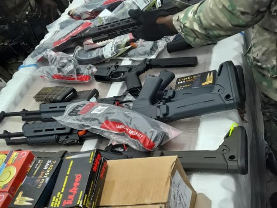 Jeudi 14 juillet 2022 des agents du Bureau de Lutte contre le Trafic de Stupéfiants (BLTS) accompagnés d’agents de la douane ont procédé à la fouille de containers en franchise saisis la veille https://www.haitilibre.com/article-37153-haiti-actualite-zapping.html, dans la zone de la Saline, à Caribean Port Service (CPS). Ces containers sont arrivés en Haïti sous la couverture de la franchise détenue par l’Église Épiscopale d’Haïti. La fouille a permis de découvrir et de saisir dans un premier container 18 fusils d’assaut (AK-47, Galil et M4) un fusil calibre 12, 4 pistolets de calibre 9 mm,, près de 20,000 munitions de différents calibre et 120 chargeurs 1 viseur et des faux billets d’un montant de 50 mille dollars. Me Jacques Lafontant, le Commissaire du Gouvernement de Port-au-Prince qui était sur place, accompagné d'un juge de Paix, a précisé que l’inventaire était partiel et qu’il restait 3 autres container destiné à l’Église Épiscopale d’Haïti (selon ce qui est écrit sue le manifeste) qui doivent être fouillé ce qui sera fait vendredi ou samedi. Une personne a été arrêtée et des avis de recherche et d’interdiction de quitter le territoire ont été émis à l’encontre de plusieurs personnes dont Mme Gina J.L Rolls la Commissaire en Douane chargée de la réception et du dédouanement de ces containers...