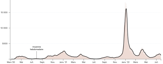 Vaccination : 12,37 millards de doses de vaccin injectées (+10 millions de doses). (Dernières données disponibles). HAÏTI : Avertissement : Le Ministère de la Santé Publique et de la Population (MSPP) n'as pas rendu disponible après le 17 juillet 2022 les données quotidiennes sur la situation du Covid-19 en Haïti. En conséquence, les données ci-dessous sur la situation en Haïti sont les dernières disponibles. Selon le Ministère de la Santé Publique, +45 nouveaux cas de Covid-19 et de ses variants auraient été confirmés en Haïti en date du 17 juillet 2022 (dernières données partielles disponibles) pour un total de 32,223 cas confirmés sur l’ensemble du territoire national (48,9% de femmes et 51,1% hommes), depuis le premier cas (19 mars 2020 https://www.haitilibre.com/article-30319-haiti-sante-origine-des-2-premiers-cas-de-covid-19-en-haiti.html ). Précédente mise à jour (+47 cas en date du 15 juillet 2022). Guérisons : 29,946 (+21) Taux de guérison : 92,93% (-) Décès : 838 décès (+0) Taux de mortalité : 2,60% (=) Dépistage depuis le début de la pandémie : 212,153 tests depuis le 19 mars 2020 (+193 en 2 jours) un nombre de tests pour l’ensemble du territoire national, insuffisant statistiquement pour être représentatif de la situation sanitaire, ce qui se traduit par un nombre de cas confirmés quotidiennement largement sous-évalué de l’avis des spécialistes de la santé. TOP 5 des Communes les plus touchées dans l’Ouest (2022) : Delmas : 996 (+5) ; Pétion-ville 758 (+2) ; Port-au-Prince 487 (+0) ; Tabarre 423 (+1) ; Croix-des-Bouquets 354 (+3) Cas confirmés par département (2022 / 2021 / 2020) : Ouest : 2022 : 3,369 (+) cas ; (2021 : 9,890) ; (2020 : 6,945 cas) Nord : 2022 : 355 (+) cas ; (2021 : 664) ; (2020 : 677 cas) Centre : 2022 : 355 (+) cas ; (2021 : 1,001) ; (2020 : 508 cas) Artibonite : 2022 : 278 (+) cas ; (2021 : 855) ; (2020 : 593 cas) Nord-Est : 2022 : 247 (+) cas ; (2021 : 404) ; (2020 : 314 cas) Sud-Est : 2022 : 356 (+) cas ; (2021 : 768) ; (2020 : 274 cas) Sud : 2022 : 293 (+) cas ; (2021 : 891) ; (2020 : 262 cas) Nord-Ouest : 2022 : 387 (+) cas ; (2021 : 383) ; (2020 : 229 cas) Grand'Anse : 2022 : 242 (+) cas ; (2021 : 861) ; (2020 : 176 cas) Nippes : 2022 : 116 (=) cas ; (2021 : 249) (2020 : 149 cas) Décès cumulés par département (2022-2021) : Ouest : 299 décès (2020 : 104 décès) Nord : 54 décès (2020 : 34 décès) Centre : 79 décès (2020 : 13 décès) Artibonite : 42 décès (2020 : 39 décès) Nord-Est : 7 décès (2020 : 6 décès) Sud : 51 décès (2020 : 6 décès) Sud-Est : 15 décès (2020 : 9 décès) Nord-Ouest : 15 décès (2020 : 12 décès) Grand'Anse : 7 décès (2020 : 13 décès) Nippes : 27 décès (2020 : 5 décès) Répartition des décès par âge (depuis le début de l’épidémie) : 0-9 ans : 15 décès 10-19 ans : 10 décès 20-29 ans : 31 décès 30-39 ans : 56 décès 40-49 ans : 80 décès 50-59 ans : 135 décès 60-69 ans : 188 décès 70-79 ans : 185 décès (+1) 80 ans et plus : 138 décès Vaccination : 248,075 haïtiens (2,13% de la population) +1,828 en 21 jours ont reçu une 1ère dose de vaccin depuis le 16 juillet 2021 date de la première injection à travers 149 centres de vaccinations ouverts et 161,066 haïtiens sont entièrement vaccinés (2 doses, 1,38% de la population) +1,723 en 21 jours. Mise à jour 10 juillet 2022 dernières informations disponibles (source MSPP). Liste des 149 Centres de vaccination ouverts en Haïti (et horaires) par département : (mise à jour 20 octobre 2021, dernières informations disponibles) DIASPORA : Situation épidémiologique : USA : *Cas depuis le premier cas (29 février 2020) : 92,761,865 cas (+267,847 en 24h), la veille (+154,093 en 24h) *Guérisons : 87,772,164 guérisons (+123,326 en 24h), la veille (+99,223 en 24h) Taux national de Guérison : 94,62% (-) *Décès : 1,053,969 (+1,034 en 24h), la veille (+468 en 24h) Taux de mortalité : 1,13% (=) *Cas actifs (moins décès et guérisons) : 3,935,732 (+143,487 en 24h), la veille (+54,402 en 24h) USA : Nombre de cas confirmés quotidiens :