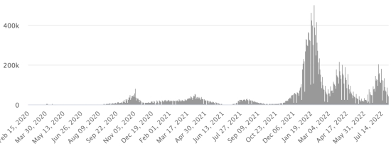 Dimanche 31 juillet 2022 le nombre de personnes contaminées dans le monde par le coronavirus Covid-19 et ses variants depuis le début de la pandémie (11 mars 2020) s’élève à 581,850,686 cas (+653,604 en 24h), la veille (+1,325,746 en 24h)