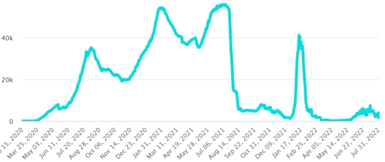Vaccination : 605,18 millions de doses de vaccin injectées depuis le 14 décembre 2020 date de la première injection aux États-Unis (+240,000) RÉPUBLIQUE DOMINICAINE : Cas confirmés depuis le 1er mars 2020 : 628,725 cas (+512 en 24h), la veille (+467 en 24h). Premier cas (1er mars 2020) Guérisons : 621,231 guérisons (+330 en 24h), la veille (+309 en 24h) Taux national de Guérison : 98,80% (-) Décès : 4,383 décès (+0), la veille (+0) Taux de mortalité : 0,69% (=) Taux de positivité sur 4 semaines épidémiologiques : 12,07% (-) Cas actifs : (excluant décès et guérisons) 3,111 cas (+182 en 24h) la veille (+158 en 24h) République Dominicaine : Tendance cas actifs : (moins guérisons et décès)