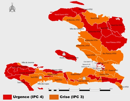 La situation de famine pour la première fois en Haïti, à Cité Soleil avec une proportion de ménages en phase 5 https://www.haitilibre.com/article-38357-haiti-flash-l-heure-est-grave-19-000-haitiens-touches-par-la-famine-4-7-millions-en-insecurite-alimentaire.html s’est améliorée : grâce à une assistance alimentaire d’urgence exceptionnelle. La proportion de ménages dans cette commune, qui était en situation de famine est passée de 5% à 0%. Toutefois, les efforts humanitaires restent et demeurent nécessaires pour prévenir une détérioration de la situation de ces ménages. Les zones Artibonite HT03 et HT04 classées en IPC 3 et plus, faiblement assistées sont caractérisées par un taux élevé d’insécurité alimentaire d’environ 50%, en raison de la violence des gangs qui réduit considérablement l’accès de la population aux services de base et aux opportunités de revenus, nécessitent une attention particulière. En raison de la sévérité de la situation, des actions urgentes sont requises afin d’apporter un soutien à près de 50 % de la population. L’établissement du point entre les interventions d’urgence et celles de développement, afin de réduire la vulnérabilité des ménages, est souhaitable. Les ménages agricoles décapitalisés, en raison des chocs économiques, climatiques et des contre performances des campagnes agricoles antérieures, nécessitent un appui immédiat pour la mise en place de la campagne de printemps 2023. Sinon, cette campagne serait grandement hypothéquée et les conditions de sécurité alimentaire de ces groupes seraient pires. Lire aussi : https://www.haitilibre.com/article-38866-haiti-grand-anse-au-bord-de-la-famine.html HL/ HaïtiLibre