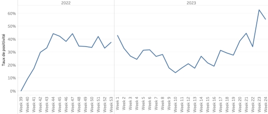 Nombre de tests réalisés : 8,989* +0 en 24h, précédent +215 en 7 jours *Non actualisé ces dernières 24h Taux de positivité : 35,42%, précédent 35,42% **Évolution du taux de positivité :