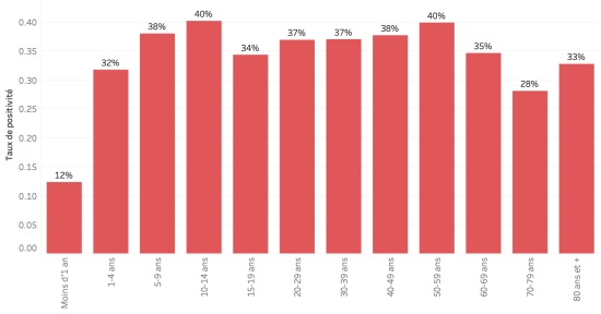 Taux de positivité par segment d’âge :