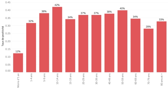 Nombre de tests réalisés : 10,025* +0 en 24h, précédent +0 en 24h Taux de positivité (moyen depuis le débit de l’épidémie) : 35,74%, précédent 35,74% *Non actualisé depuis 3 jours. Évolution hebdomadaire du taux de positivité (semaine 28) :