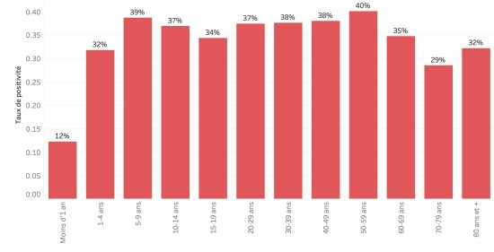 Taux de positivité (moyen depuis le débit de l’épidémie) : 35,70%, précédent 35,69%