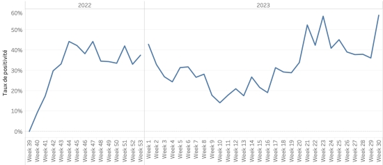 Évolution hebdomadaire du taux de positivité (semaine 30) :