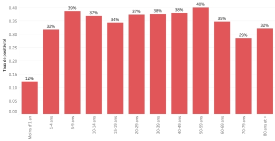 Taux de positivité par segment d’âge :