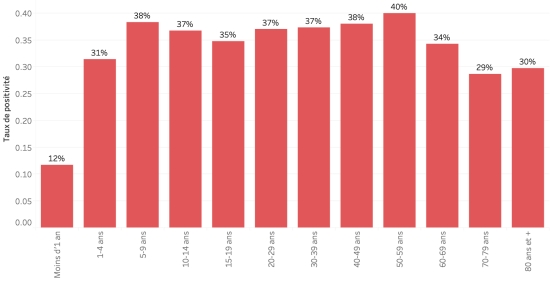 7 août 2023 : (Précédent bulletin du Ministère 5 août https://www.haitilibre.com/article-40328-haiti-cholera-bulletin-quotidien-264.html Données calculées depuis le premier cas confirmé (3 octobre 2022) selon les données de la Direction d’Épidémiologie, des Laboratoires et de la Recherche du Ministère de la Santé publique et de la Population (MSPP). Total des cas suspects : 61,296 depuis le 3 octobre 2022 +39 (partiel) en 48h, précédent +241 Total de nouveaux cas confirmés : 3,712* cas +16 en 48h, précédent +0 Total des cas hospitalisés (suspects et confirmés) : 54,368 depuis le 3 octobre 2022 +44 hospitalisations en 48h, précédent +222 Total des décès : 826 décès ((578 institutionnels (+0) et 248** communautaires (+0)) +0, précédent +3 * En extrapolant le taux moyen de cas confirmés testés sur le nombre de cas suspects de choléra depuis le début de l’épidémie, le nombre de cas confirmés devrait réellement se situer à près de 22,000 **Institutionnel non actualisé. Données communautaires très partielles, actualisation rare… Répartition des cas suspects, total depuis le 3 octobre : (Actualisation partielle et incomplète du Ministère pour ce jour) Moins d’1 an : 1,521 cas (+0) 1-4 ans : 12,221cas (+5) 5-9 ans : 8,703 cas (+3) 10-14 ans : 4,550 cas (+4) 15-19 ans : 3,419 cas (+3) 20-29 ans : 7,786 cas (+4) 30-39 ans : 6,635 cas (+4) 40-49 ans : 4,955 cas (+3) 50-59 ans : 3,702 cas (+4) 60-69 ans : 2,715 cas (+6) 70-79 ans : 1,605 cas (+3) 80 ans et + : 667 cas (+0) Hommes : 53,42% d’hommes (-) ; Femmes 46,58% (+) (non actualisé depuis 24h) Taux de positivité par segment d’âge :