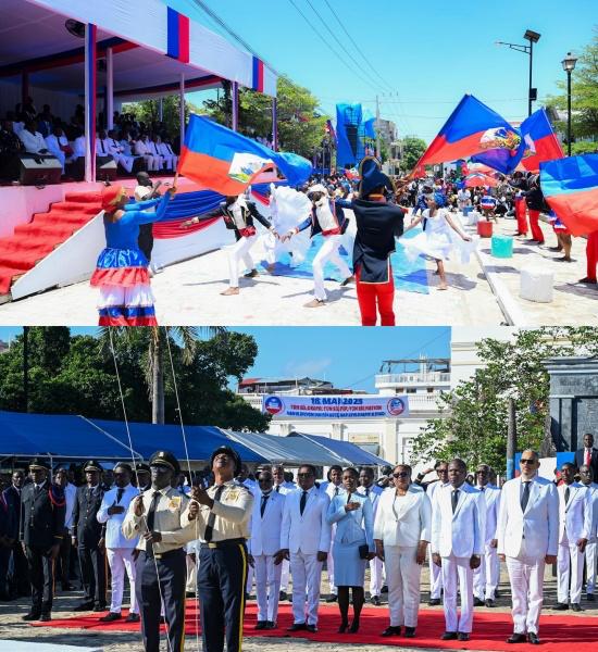 En présence de hautes autorités de l’État, du Premier Ministre Alix Didier Fils-Aimé, de Fritz Alphonse Jean, Président pro tempore du Conseil Présidentiel de Transition (CPT), des membres du Gouvernement et du CPT, du Vice-président de la Cour de Cassation, du Commandant a.i. des Forces Armées d’Haïti, du Directeur Général a.i. de la Police Nationale d’Haïti, la Mairesse de la ville du Cap-Haïtien et des représentants du corps diplomatiques, les festivités ont débuté par une mise en scène d’inspiration culturelle rendant hommage à Legba, figure emblématique du panthéon vaudou, traditionnellement invoquée pour ouvrir les chemins. Ce moment solennel a précédé la levée des couleurs nationales, au son de la Dessalinienne et de l’hymne présidentiel, dans une atmosphère empreinte de fierté nationale sur la Place d'Armes du Cap-Haïtien, accompagnée d’un temps de recueillement et de réflexion sur le sens profond du drapeau haïtien.