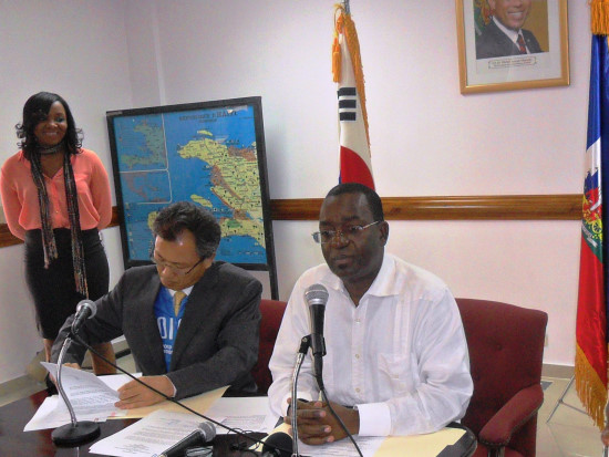Vendredi, a été signé, un protocole d’accord d’un don de 2 millions de dollars américains destiné à l’achat de 50 autobus de transport scolaire sur une période de deux ans, entre le Gouvernement haïtien, représenté par Wilson Laleau, le Ministre de l’Économie et des Finances, accompagné de Castro Arboite Directeur de la compagnie de transport scolaire « Dignité » et d’un représentant du Ministère de la Planification et de la Coopération Externe et le Gouvernement de Corée du Sud, représenté par M. Sae Chul OH Représentant en Chef de la KOICA en Haïti, accompagné d’une délégation sud-coréenne. Le Ministre Laleau a indiqué que ce projet de l'Agence coréenne de coopération internationale (KOICA), va permettre d’améliorer le service de transport scolaire dans les dix départements et indiqué que dans le cadre de cet accord, des experts Sud-coréens procèderont à la formation de techniciens haïtiens, pour l’entretien mécanique de ces autobus.