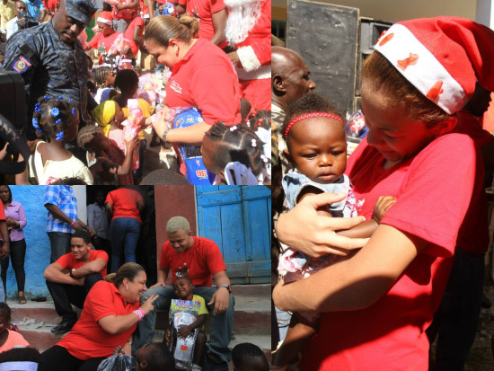 Wednesday, the First Lady of the Republic, Sophia Martelly, accompanied by her children, Sandro, Yani, and Malaika went to Boucan-Carré, municipality in the department of the Centre, and Délices, 5th communal section of Arcahaie where, in a very friendly atmosphere, she distributed toys and food kits to thousands of children, youth and adults gathered in large number in the circumstances. The children enjoyed this moment of sharing with the First Lady of the Republic, which in a maternal impulse, shared with the smallest of these two localities toys but also affection. Joy shone on the faces of these children, who had mostly never experienced such attention for Christmas. They highly praised the First Lady, that they thanked for these marks of love, care and solidarity.
