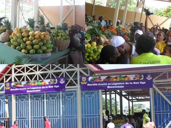 On Friday, President Michel Martelly, accompanied by the Mayor of Petion-ville Yvanka Jolicoeur Brutus [President of the communal Commission] has inaugurated the market of fruits and vegetables of the Oge Street in Petionville. Housed in a brand new building, this market of 345 square meters, built in(reinforced concrete, steel), funded to the tune of 18 million gourdes (18,323,905.62) by the Haitian government, through the Office of Monetization of Programs of Development Assistance, includes: ten units consisting of 56 stalls, four deposits, a toilet block, three showers and a water tank 10,000 gallons, can receive under hygienic and safe conditions, 56 merchants.