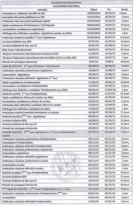 The General Secretariat of of the Presidency informs the public that, by order dated March 13, 2015, the Haitian people is convened to elections the Sunday, August 9, 2015 for the first round of legislative elections, the Sunday, October 25, 2015 for the first round of the presidential elections, the local elections and the second round of legislative elections, and, if necessary, Sunday, December 27, 2015 for the second round of the presidential election. In addition, by order dated March 13, 2015, the current electoral constituency of Cerca La Source is divided into two separate electoral constituencies : the constituency of Cerca la Source and the constituency of Thomassique. The President of the Republic, while reiterating the strong determination of the Executive to facilitate the holding of free, credible, independent, transparent and inclusive elections, take this opportunity to invite all citizens of voting age and holders of their National Identification Card https://www.haitilibre.com/en/news-13298-haiti-elections-a-decree-extends-the-validity-of-cin-expiring.html to fulfill their civic duty and at the same time contribute to the strengthening of democracy and the rule of law. The entire electoral timelab :