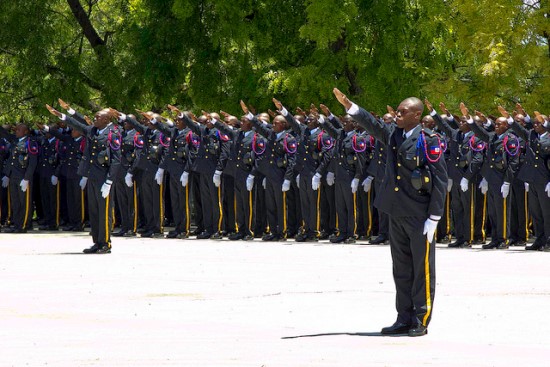 Highlights of the speech of President Martelly to the the 22nd promotion "From today you are part of this elite which is responsible for protecting women, men, children, the state officials and goods of this country. The country, by giving you today that responsibility, has confidence in you, honor it by continuing with rigor, the work of professionalization of the Haitian National Police [...] You have the full support of my Government to do your job in law enforcement. My Government will not accept judicial corruption, which often has undermined the work of the police. It is no longer question to release of gang leaders, kidnappers and drug dealers took in flagrante delicto, it's over the political protection for criminals. I invite to a better organization of police substation and police stations, I insist to the maintenance of physical fitness, of the dress code of police officers, of the strict respect of the hierarchy. I exhorts you to strengthen the systems and procedures in place at the level of the staff headquarters (Etat Major), the police substation and police stations. My Government will do its best within the resources available, to give you the means to do your job. I will not tolerate, abuse of any nature from the police. Make proof of moderation but of firmness, an iron fist in a velvet glove. The law must always be your only compass. Never forget that you are a police officer only to protect and serve. Monitors, let me thank you on behalf of the Nation, for a job well done. The country has a debt of gratitude to you, is with the participation of all and with the competence of each, that we will build the new Haiti. Nobody, I repeat nobody, can help us in this direction, it is to us, only to us as Haitian to do it. [...] I know you've worked hard to achieve this graduation [...] but there are reasons for this, is to allow you, after having to take the oath on the Constitution to work even better. Remember that your job is to serve and protect the population, [...] As Commander in Chief, I will work with the Government to get you what you need, so that you can do your job even better. Let me be clear with you this morning, the big responsibility that you take as a police officer, to protect and serve the the population, the President is behind you at 100%, I take this opportunity to tell you also that the President will not tolerate the police officers who are in the disorder [...] I feel that your parents and families who are here today are very happy, I feel that there are a lot of pride in them, when thay looking at their child wearing the uniform of the police, who just received their diplomas, I am also proud, in the same way as your parents, when I look at you. I invite you in the service that you will give the country to enforce the trust that your parents put in you, to respect the confidence that the Haitian people, the justice, the Director-General, the staff headquarters (Etat Major), your superiors and myself as President, we have put in you. I wish you good luck in the new responsibilities that you received today. Finally, I must thank the Minustah and the friends of the cooperation who assist the National Police. My Government will work with you for a better performance of our cooperation within the framework of the institutional strengthening [...] it is the only way to reduce the dependence on Haiti. In the weeks and months ahead we will work together for restructure international aid to my country and ensure its receipt by the institutions and the Haitian people. The country thank you for this assistance which made possible the graduation of today. Police officers in service, 22nd promotion of the PNH, the Haitian people appreciate your efforts, we thank your families who consent tremendous sacrifices every day, you have our support and you are in our prayers every day. May God bless you and may God bless Haiti." See also: https://www.haitilibre.com/en/news-1122-haiti-police-force-opening-of-the-22nd-promotion.html HL/ HaitiLibre