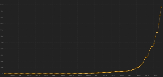 GLOBAL SITUATION : Monday, June 1, 2020, the number of people infected worldwide by the Covid-19 coronavirus since the start of the pandemic (Official source), amounted to 6,189,560 confirmed cases +101,658 cases in 24 hours ( the day before: +142.165). Number of contaminated countries 188 (unchanged). Bulletin from the day before : https://www.haitilibre.com/en/news-30912-haiti-covid-19-daily-report-may-31-2020.html Since the start of the pandemic 2,656,267 have been cured of Covid-19 worldwide +73,983 people (the day before: +75,030). Since the start of the pandemic 372,469 people have died from Covid-19 worldwide +2,842 in 24 hours (the day before: +4,259). The number of active cases worldwide (excluding deaths and cures) is currently 3,160,824 cases +24,833 in 24 hours (the day before: +62,976). TOP 5 of the countries with the most active cases : 1st - USA: 1,241,050 cases -9,092 in 24h (the day before: +12,337) 2rd - Brazil: 278,980 cases +10,266 in 24h (the day before: +21,902) 3rd - United Kingdom: 236.406 cases +7.139 in 24 hours (the day before: +1.382) 4th - Russia: 234,146 cases +4,879 in 24h (the day before: +4,716) 5th - India: 93,721 cases (enters the Top 5) TOP 5 of the countries with the most deaths : 1st - USA: 104,383 deaths +602 in 24 hours (the day before: +945) 2nd - United Kingdom 38,571 deaths +113 in 24 hours (the day before: +215) 3rd - Italy: 33,415 deaths +75 in 24 hours (the day before: +111) 4th - Brazil: 29,314 deaths +480 in 24h (the day before: +956) 5th - France: 28,782 deaths +31 in 24 hours (the day before: +57) DIASPORA : United States : Cases since the start of the epidemic : 1,790,191 cases +19,807 in 24 hours (the day before: +23,297) Healings : 444,758 people +28,297 (the day before +10,015) Death : 104,383 deaths +602 in 24 hours (the day before: +945) Active case (minus deaths and recoveries) : 1,241,050 cases -9,092 in 24 hours (the day before: +12,337) Canada : Cases since the start of the epidemic : 92,479 cases +798 in 24 hours (the hurdy-gurdy +772) Healings : 49,213 people, +696 in 24h (the day before +612) Death : 7,374 deaths +215 in 24 hours (the day before: +96) Active cases : (excluding death and recovery) 36,005 active cases -113 in 24 hours (the day before: +64) France : Cases since the start of the epidemic : 189.009 cases +257 in 24 hours (the day before: +1.828) Healings : 68,346 people +87 in 24h (the day before: +465) Death : 28,782 deaths since the start of the epidemic +31 (the day before: +57) Active cases : (excluding death and recovery) 91,731 cases +139 (the day before: +1,306) Latin America and the Caribbean active cases : Brazil : 278,980 cases +10,266 in 24h (the day before: +21,902) Peru : 92,762 cases +7,909 in 24h (the day before: +9,964) Chile : 55,907 cases +2,477 in 24h (the day before: +2,334) Colombia : 19,271 * cases (the day before: +363) (* update not available) Mexico : 16,962 cases +476 in 24 hours (the day before: +277) one place ahead Ecuador : 16,148 cases +101 in 24h (the day before: -686) Argentina : 10,976 cases +78 cases in 24 hours (the day before: +787) Dominican Republic : 6,224 cases -629 cases in 24 hours (the day before: +76) Panama : 3,613 cases +339 in 24h (the day before: -1,552) Haiti : 2,056 (+ 14.2%) +256 cases in 24 hours (the day before: +263) Jamaica : 266 cases -16 in 24h (the day before: +5) French Guiana : 426 cases +22 (the day before: +26) Cuba : 153 cases +6 in 24 hours (the day before: -16) Martinique : 101 cases -4 Guadeloupe : 75 cases -10 cases in 24 hours (the day before +10) Bahamas : 43 cases (unchanged) Saint Martin : 38 cases unchanged HAITI : Epidemiological situation : The Ministry of Public Health informs that 259 new cases have been confirmed in Haiti (the day before: 281), for a total of 2,124 cases throughout the national territory (40.2% women and 59.8% men) since the first case (March 19, 2020 https://www.haitilibre.com/en/news-30319-haiti-health-origin-of-the-first-2-cases-of-covid-19-in-haiti.html ). 3 new deaths have been recorded (1 in the West, 1 in the Artibonite and 1 in the North) bringing the total to 44. The number of active cases (minus deaths and cures) is now 2.056 (+ 14.2%) +256 cases in 24 hours (the day before: +263) Number of suspected cases : 5,244 cases (+ 14.57%) +667 (the day before: +471) People hospitalized : 364 people +16 in 24 hours (the day before: +24) Home quarantine : 1,395 people -256 in 24h (the day before: +129) Graph: daily confirmed cases