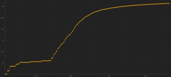 France : Cases confirmed since the first case : 189,569 cases +767 in 24h (the day before: +342) Healings : 69,967 people +521 in 24h (the day before: +643) Death : 29,045 deaths +44 in 24 hours (the day before: +81) Active cases : (excluding death and recovery) 90.407 cases +202 in 24 hours (the day before: -372) Graph: Trend of propagation