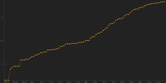 GLOBAL SITUATION : Thursday, June 18, 2020, the number of people infected worldwide by the Covid-19 coronavirus since the start of the pandemic (Official source), amounted to 8,383,277 confirmed cases + 172,635 cases in 24 hours ( the day before: +145,676). Number of contaminated countries 188 (unchanged). Bulletin from the day before : https://www.haitilibre.com/en/news-31051-haiti-covid-19-daily-report-june-17-2020.html Since the start of the pandemic 4,101,877 people have been cured of Covid-19 worldwide +119,003 in 24 hours (the day before: +86,628) Since the start of the pandemic 449,628 people have died from Covid-19 worldwide +5,065 in 24 hours (the day before: +6,959). The number of active cases worldwide (excluding death and recovery) is currently 3,831,772 cases +48,567 in 24 hours (the day before: -55,153). Average mortality rate in the world : 5.36% (-) Average cure rate in the world : 48.93% (+) TOP 5 of the countries with the most active cases : 1st - USA: 1,453,382 cases (+16,117 in 24h), the day before (+15,700) 2nd - Brazil: 387,821 cases (-122 in 24h), the day before (+21,340) 3rd - United Kingdom: 257,175 cases (+924 in 24h), the day before (+1,041) 4th - Russia: 239,254 cases (-2,027 in 24h), the day before (-2,390) 5th - India: 160,384 cases (+5,157 in 24h), the day before (+2,049) TOP 5 of the countries with the most deaths : 1st - USA: 117,717 deaths (+754 in 24 hours), the day before (+836) 2nd - Brazil: 46,510 deaths (+1,269 in 24 hours), the day before (+1,282) 3rd - United Kingdom 42,238 deaths (+184 in 24 hours), the day before (+233) 4th - Italy: 34,448 deaths (+43 in 24 hours), the day before (+34) 5th - France: 29,578 deaths (+51 in 24 hours), the day before (+111) DIASPORA : United States : Cases since the beginning of the epidemic : 2,163,290 cases (+25,559 in 24h), the day before (+23,705) Healings : 592,191 people (+8,688 in 24h), the day before (+7,169) National Healing Rate : 27.37% (+) Death : 117,717 deaths (+754 in 24 hours), the day before (+836) Active cases (less death and recovery): 1,453,382 cases (+16,117 in 24 hours), the day before (+15,700) Canada : Cases since the beginning of the epidemic : 101,491 cases (+404 in 24h), the day before (-324) Healings : 63,280 people (+1,381 in 24h), the day before (+433) National Healing Rate : 62.35% (+) Death : 8,312 deaths (+41 in 24 hours), the day before (+43) Active cases : (excluding death and recovery) 29,899 active cases (-1,018 in 24 hours), the day before (-152) France : Cases confirmed since the first case : 194,805 cases (+458 in 24h), the day before (+42) Healings : 73,791 people (+466 in 24h), the day before (+291) National Healing Rate : 37.88% (+) Death : 29,578 deaths (+51 in 24 hours), the day before (+111) Active cases : (excluding death and recovery) 91,495 cases (-59 in 24h), the day before (-208) Latin America and the Caribbean active cases : Brazil : Brazil: 387,821 cases (-122 in 24h), the day before (+21,340) Peru : 105,029 cases (+134 in 24h), the day before (-1,828) Colombia : 32,796 cases (+1,379 in 24h), the day before (+42) Chile : 35,082 cases (+10,248 in 24h), the day before (-2,448) Mexico : 22.209 (+1.050 in 24h), the day before (+767) Argentina : 24,127 cases (+1,366 in 24h), the day before (+1,012) Ecuador : 20,602 cases (+313 in 24h), the day before (+285) Dominican Republic : 9,256 cases (+318 in 24h), the day before (+297) Panama : 8,353 cases (+622 in 24h), the day before (+523) Haiti : 4,582 (+ 3.15%) +139 in 24h (the day before: +102) French Guiana : 1,392 cases (unchanged) (not updated) Cuba : 197 cases (unchanged within 24 hours), the day before (+2) Jamaica : 165 cases (+3 in 24h), the day before (-19) Martinique : 99 cases (unchanged) (not updated) Guadeloupe : 68 cases (unchanged) (not updated) Bahamas : 21 cases (unchanged) HAITI : Epidemiological situation : The Ministry of Public Health informs that 141 new cases of Covid-19 were confirmed in Haiti (the day before: +106), for a total of 4,688 cases throughout the national territory (40.0% women and 60.0% d 'men) since the first case (March 19, 2020 https://www.haitilibre.com/article-30319-haiti-sante-origine-des-2-premiers-cas-de-covid-19-en-haiti.html ). Deaths : 2 new deaths have been recorded in the North, bringing the national total to 82 Active cases : (less death and recovery): 4.582 (+ 3.15%) +139 in 24 hours (the day before: +102) Number of suspected cases investigated since March 19 : 9,651 cases (+298) in 24 hours the day before (+306). People hospitalized and quarantine at home : information not available Number of tests : information not available Graph *: daily confirmed cases
