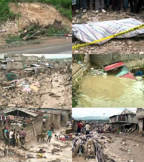 Our country is confronted since a few days to heavy rains, particularly in the departments of South, Nippes, Grande-Anse, Artibonite, North West, North and Northeast, here's a review of the situation, assessment of damage and human. This article covers the highlights until June 7, 2011 7pm. In the Department of Centre there were two victims in a Nippes one, and in the Department of the West 20 victims, 6 missing and 8 wounded. In this same department 470 houses were damaged, 14 destroyed and there are 484 victims. Situation for the department of West, to Carrefour the situation is critical between Mariani and the club Le Lambi. Camps are affected to the 2nd ruelle des Rails (tents destroyed). Flood overflow of the river Froide and floods. A landslide was reported at the street Diquini prolonged, Cité Tama. Flood to Caillot. One person lost its life at the camp Ti-Source. To Cité Soleil, the waters have reached up to 50cm at the level of some houses. Local residents took refuge on the roofs to Ti Haïti, Bonocourt, Vaudreuil, Sarthe, Tèt Dlo. Urgent need of evacuation were reported. Steps have been taken in this direction. Shelters planned to home: Ecole Joseph Hervé, to Sarthe 55, Street Germain, and CEEH, to the street Larco. This last premises can accommodate 1,000 families. To Delams, the zones of Delmas 31/Hôpital La Paix, Caltapasse, Philo, Delmas 17, Nan Citron (Road cut) are flooded. Houses collapsed in Delmas 40 B. Floods to Maïs Gâté, Petit Place Cazeau. To Gressier the section Morne à bateau is completely flooded. The cité Estinvalle and the Zone silo are flooded. To Pétion-Ville, 2 victims to Nerrette, 7 victims to Pegguy Ville (Georges Sylvain) and 4 to Jacquet. To Port-au-Prince, the zones of Ravine Pintade, Camps Théâtre national; Stade Sylvio Cator, Route Piste, Centre Geskhio, Vallée de Bourdon, Cité l'Éternel, Rue Capois, Rue Oswald Durand are flooded. To Tabarre, the camps Terre Roche, Dortoir Aristide, Camps Tabarre are flooded. Falling trees to Clercin 22. There are also flooding in the zones of Tabarre 47, 48, 14, 27 and 52, Carrefour Rita, Clercine 12. To Thomazeau, after the evacuation of 56 families on Sunday, a part of the families of Fond Chalet (Thomazeau), who do not want to leave, evacuated for themselves and went to downtown.
