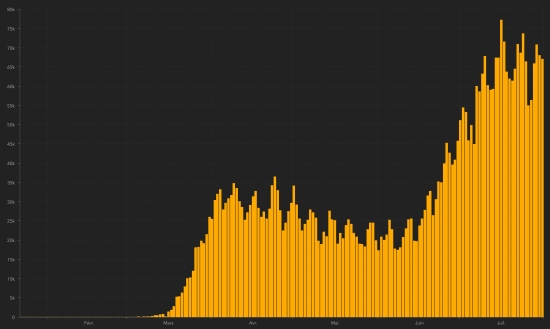 Brazil : 561,156 cases (-876 in 24 hours) the day before (+ 22,703)