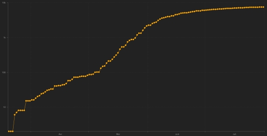 5th - India: 36,511 (+768 in 24 hours), the day before (enters the top 5)