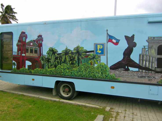 The bookmobile of the Urban Community of La Rochelle was replaced in late 2010. Rather than taking its "retirement", the Bookmobile has been "revamped" and refurbished for a second life in Port-au-Prince. The Agglomeration Community, which maintains for 10 years, close relations with the Republic of Haiti, which is historically linked with La Rochelle, had included in 2010 in its framework of cooperation with Haiti, a mobile library project, project postponed due to the earthquake. Vladimir Pascal, a young Haitian artist and Julien Frenzel a French artist, have decorated the vehicle before its departure. On one side of the bus appears Port-au-Prince, the other La Rochelle, a double image that symbolizes the friendship and cooperation between the two cities.