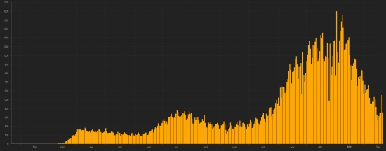 Vaccination: 204.84 million doses of vaccine injected (+4.19 million doses injected in 24 hours (updated February 20, 2021, latest data available). TOP 5 countries with the most active cases: (less deaths and recoveries) 1st - USA: 8,680,718 cases, (-25,859 in 24 hours), the day before (+7,109) 2nd - France: 3,319,897 (+21,125 in 24 hours), the day before (+20,430) 3rd - Spain: 2,915,645 cases (update not available), previous (+11,038) 4th * - United Kingdom 1,654,309 cases (+9,961 in 24 hours), the day before (+11,494) 5th - Brazil: 822,666 cases (-28,187 in 24 hours), the day before (+24,439) TOP 5 countries with the most deaths: 1st - USA: 497,648 deaths (+1,844 in 24 hours), the day before (+ 2,706) 2nd - Brazil: 245,977 deaths (+1,240 in 24 hours), the day before (+1,280) 3rd - Mexico: 179,797 deaths (+1,000 in 24 hours), the day before (+857) 4th - India: 156,302 deaths (+90 in 24 hours), the day before (+101) 5th * - United Kingdom: 120,365 deaths (+445 in 24 hours), the day before (+533) TOP 5 countries with the highest number of healings: 1st - USA: 18,899,272 healings (+95,549 in 24h), cure rate 67.31% (+) 2nd - India: 10,689,715 healings (+11,667 in 24h), cure rate 97.25% (-) 3rd - Brazil: 9,070,505 healings (+81,887 in 24h), cure rate 89.46% (+) 4th - Russia: 3,671,483 healings (+15,169 in 24 hours), cure rate 89.17% (+) 5th - Turkey: 2,518,758 healings (+7,210 in 24 hours), cure rate 95.70% (-) DIASPORA: USA: Case since the first case (March 9, 2020): 28,077,638 cases (+71,534), the day before (+110,117) Healings: 18,899,272 healings (+95,549 in 24h), the day before (+106,924) National Healing Rate: 67.31% (+) Death: 497,648 deaths (+1,844 in 24h), the day before (+ 2,706) Active cases (less deaths and recoveries): 8,680,718 cases, (-25,859 in 24 hours), the day before (+7,109) Canada: Cases since the start of the epidemic (January 25, 2020): 848,330 cases (+2.657 in 24 hours), the day before (+3.083) Healings: 795,451 people (+2,996 in 24 hours), the day before (+3,347) National Healing Rate: 93.77% (+) Death: 21,631 deaths (+50 in 24 hours), the day before (+72) National death rate: 2.55% (=) Active cases: (excluding death and recoveries) 32,248 cases (-389 in 24 hours), the day before (-336) Vaccination: 1.4 million doses of vaccine injected (+50,000 doses injected in 24 hours, updated February 18, 2021, latest data available), since December 14, 2020, date of the first injection in Canada . Canada: Number of daily confirmed cases
