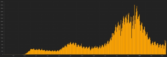 France: Cases confirmed since the first case (January 24, 2020): 4,466,595 cases (+41,869 in 24 hours), the day before (+45,641 in 48 hours correction and catching up) Healings: 288,062 people (+1,455 in 24 hours), the day before (+1,408) National Healing Rate: 6.44% (-) Deaths: 94,275 deaths (+897 in 24 hours including 303 in hospitals +394 in EMS / EHPAD), the day before in total, (+225) Active cases: (excluding death and recovery) 4,084,258 cases (+39,517 in 24 hours), the day before (+44,011) Latin America and the Caribbean active cases (less deaths and recoveries): * Brazil: 1,275,902 cases (+27,412), the day before (+12,044) * Mexico: 263,185 cases (+979 in 24 hours), the day before (+1,395) * Argentina: 171,337 cases (+4,786 in 24 hours), the day before (+655) * Colombia: 48,744 cases (+1,384 in 24 hours), the day before (+1,066) * Chile: 41.759 cases (+2.494 in 24 hours), the day before (+2.710) advance by one place * Peru: 38,093 cases (+2.565 in 24 hours), the day before (-31) is one place ahead Dominican Republic: 37,638 cases (+7 in 24 hours) the day before (-163) * Ecuador: 32,972 cases (+2,745 in 24 hours), the day before (+1,807) * Jamaica: 20,053 cases (+210 in 24 hours), the day before (+336) French Guiana: 14,582 cases (+158 in 24 hours), the day before (-3) Guadeloupe: 10,011 cases (-2 in 48 hours), the day before (not available)) Martinique: 6,784cas (-3 in 24), the day before (-1 in 48 hours) * Panama: 5,030 cases (unchanged), the day before (-13) * Cuba: 3,374 cases (-16 in 24 hours), the day before (-14) Haiti: 1,731 cases (update not available), the day before (-47) * Bahamas: 990 cases (update not available 3rd day), the day before (not available) HAITI: Epidemiological situation: Warning: The Ministry of Public Health did not make available daily data on the Covid-19 situation in Haiti after March 19. As a result, the information below Below on the situation in Haiti are the latest data available . According to the Ministry of Public Health, 4 new cases of Covid-19 were confirmed in Haiti on March 19, 2021 (latest partial data available) for a total of 12,736 cases confirmed throughout the national territory since the first case (March 19, 2020 https://www.haitilibre.com/en/news-30319-haiti-health-origin-of-the-first-2-cases-of-covid-19-in-haiti.html ). Update the day before (10 new cases on March 17 and 18, 2021) Healings: 10,754 people (unchanged) cases the day before (+55) Healing rate: 84.43% (-) Deaths: 251 deaths, (+0 since March 11) Death rate: 1.97% (=) Active cases: (less deaths and recoveries) 1,731 cases (+4 in 24 hours), the day before (-47) Imported cases: 152 cases since the reopening of airports and +43 since the last report dated July 9 (109 cases) https://www.haitilibre.com/en/news-31348-haiti-flash-152-cases-imported-since-the-reopening-of-airports.html (Since then, this information is no longer made available) Suspected cases investigated since March 19: 57,895 cases (+108 in 24 hours) Cases tested since the start of the pandemic: 57,883 cases (+111 in 24 hours) as of March 19 (latest data available). Note that the very low number of people tested does not statistically make it possible to make a representative estimate of the cases of Covid-19 in Haiti. People hospitalized: 198 as of March 18. (latest data available) People in intensive care: (not available) Person in isolation: 1,731 as of March 18. (latest data available) People currently treated at home: 842 as of March 18, latest data available). Cases confirmed by department: West: 9.059 (unchanged) North: 774 (unchanged) Artibonite: 664 (unchanged) Center: 637 (unchanged) Northeast: 368 (unchanged) South-East: 302 (+4) South: 294 (unchanged) Northwest: 251 (unchanged) Grand'Anse: 227 (unchanged) Nippes: 160 (unchanged) UNITED STATES: Epidemiological situation: United States: Case since the first case (March 9, 2020): 30,159,997 cases (+80,714 in 24 hours), the day before (+68,350) * Healings: 22,275,268 healings (+79,059 in 24h), the day before (+63,330) National Healing Rate: 73.85% (+) Deaths: 548,087 deaths (+1,265 in 24 hours), the day before (+1,541) National death rate: 1.81% (=) Active cases (less deaths and recoveries): 7,336,642 cases, (+390 in 24 hours), the day before (+3,479) Tests: 384,520,168 people tested since the first case. Vaccination: 136.68 million doses of vaccine injected since December 14, 2020, date of the first injection in the United States (+3.37 million injections, in 24 hours, updated from 26 March 2021 latest available data). USA: Number of daily confirmed cases