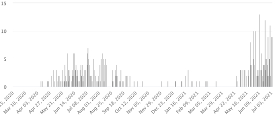 Active cases: (less deaths and recoveries) 5,691 cases (+91 in 24 hours), previous (+92 in 24 hours) Haiti: Trend of active cases since the start of the pandemic: