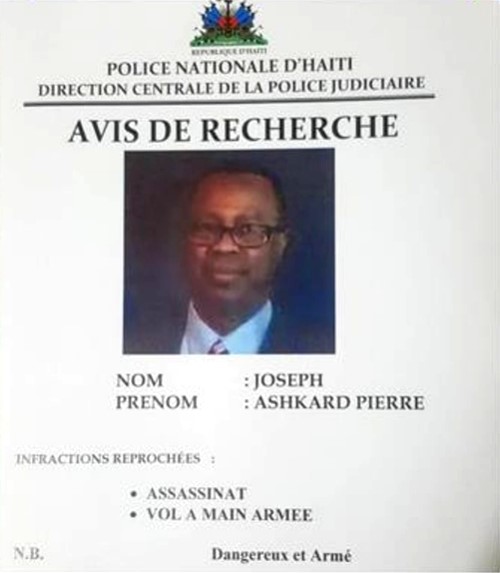Carrefour Centrale III will bear the name of Jovenel Moïse The General Directorate of EDH informs the Haitian people that it has been decided to name the Carrefour III power plant: "Double Fuel Electric Power Station of HE Mr. Jovenel MOISE, President of the Republic of Haiti from February 7, 2017 to July 7, 2021, date of his assassination". Big white march in Port-de-Paix Thousands of people, white t-shirts, marched this Friday, July 16, in the streets of Port-de-Paix (North-West) and Trou-du-Nord (North-East), to demand justice for the President Jovenel Moïse assassinated on Wednesday July 7, 2021 https://www.haitilibre.com/en/news-34238-haiti-flash-monitoring-of-investigations-into-the-assassination-of-president-jovenel-moise.html . The signs read : "San Jovenel pap koule pou granmesi", "Aba USA", "Mare Léon Charles", "Mare tout sekirite ki te nan kay prezidan an"... PNH : Search NOTICE In the context of the assassination of President Jovenl Moïse, the Haitian National Police (PNH) has just launched an investigation notice in the context of the assassination of President Jovenel Moïse : Ashkard Pierre Joseph, with the alleged offenses : Assassination and armed robbery. NB. dangerous and armed.