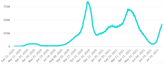 Vaccination: 350.63 million doses of vaccine injected since December 14, 2020, date of the first injection in the United States (840,000 doses injected, in 24 hours). Update August 7, latest data available). DOMINICAN REPUBLIC: Cases confirmed since March 1, 2020: 344,151 cases (+322 in 24 hours) the day before (+317). First case (March 1, 2020) https://www.haitilibre.com/en/news-30165-haiti-flash-first-case-of-covid-19-in-the-dominican-republic.html Healings: 326,501 healings since March 1 (+628 in 24 hours), the day before (+696) National Healing Rate: 94.87% (+) Death: 3,974 deaths (+1 in 24 hours), the day before (+0) Mortality rate: 1.15% (=) Active cases: (excluding death and recovery) 13,676 cases (-307 in 24 hours) the day before (-379) Dominican Republic: Trend of active cases: (less healings and deaths)