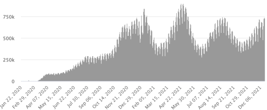 WORLD SITUATION: Epidemiological situation: Sunday, December 19, 2021, the number of people worldwide infected with the Covid-19 coronavirus and its variants since the start of the pandemic amounts to 274,583,552 cases (+582,558 in 24 hours), the day before ( +730.461) Number of contaminated countries: 221 * Healings: 246,409,551 people were cured of Covid-19 worldwide (+435,838 in 24 hours), the day before (+559,521) * Deaths: 5,368,198 people died from Covid-19 around the world (+6,554 in 24 hours), the day before (+7,742) * Active cases (less deaths and recoveries) in the world is currently 22,805,803 cases (+140,166 in 24 hours), the day before (+163,198) Average cure rate in the world: 89.73% (-) Average death rate in the world: 1.95% (=) World: Number of daily confirmed cases: