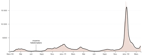 (Day-1) TOP 5 Provinces with the most new cases in the last 24 hours: La Altagracia: +23 new cases in 24 hours () Santiago: +12 new cases in 24 hours (+) Maria Trinidad Sánchez: +2 new cases in 24 hours () Santo Domingo: +1 new cases in 24 hours (-) Peravia: + 1 new cases in 24 hours () Vaccination: 15.48 million doses of vaccine injected since February 16, 2021, date of the first injection in the Dominican Republic (+10,000 doses injected in 24 hours). Updated March 27, 2022 (latest data available). QUEBEC: Confirmed cases since the first case (February 27, 2020): 959,212 (+5,714 in 72 hours), previous (+2,203 in 24 hours Healings: 926,395 people (+3,997 in 72 hours) previous (+1,458 in 24 hours) Cure rate: 96.57% (-) Deaths: 14,325 (+25 in 72h) previous (+12 in 24h) Death rate: 1.49% (=) Active cases: (excluding death and recovery) 18,492 cases (+1,692 in 72 hours), previous (+733 in 24 hours) Quebec: Trend of daily confirmed cases: