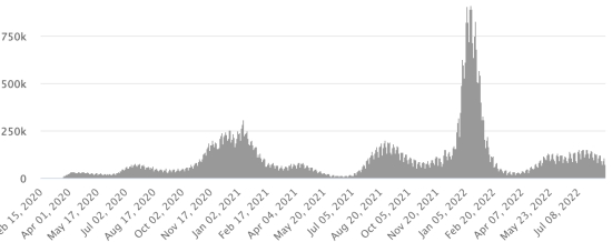 GLOBAL SITUATION 2019-2022: Epidemiological situation: Sunday August 21, 2022 the number of people infected worldwide with the Covid-19 coronavirus and its variants since the start of the pandemic (March 11, 2020) amounts to 600,670,167 cases (+605,357 in 24 hours ), the day before (+870.314 in 24h) Number of infected countries: 228 *Healings: 574,794,240 people have been cured of Covid-19 worldwide (+724,612 in 24 hours), the day before (+905,622 in 24 hours) *Deaths: 6,471,334 people have died of Covid-19 worldwide since the start of the pandemic (+1,300 in 24 hours), the day before (+3,087 in 24 hours) *Active cases (less deaths and recoveries) in the world is currently 19,404,593 cases (-120,555 in 24 hours), the day before (-38,395 in 24 hours) World healing rate: 95.69% (+) Death rate in the world: 1.07% (=) World: Number of daily confirmed cases: