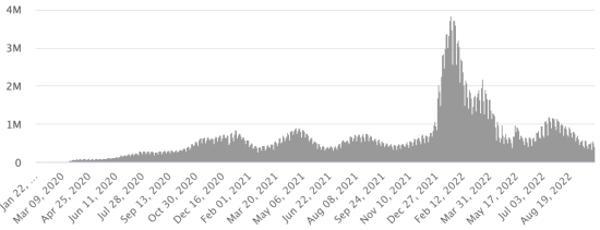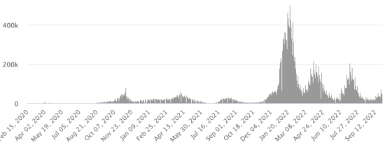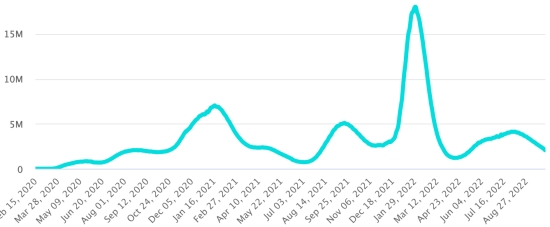 Vaccination: 12.84 billion doses of vaccine injected (+10 million). (Latest data available). HAITI: According to the Ministry of Public Health, +35 new cases of Covid-19 and its variants have been confirmed in Haiti as of September 20, 2022 (latest partial data available ) for a total of 33,756 confirmed cases throughout the national territory (48.8% women and 51.2% men), since the first case (March 19, 2020 https://www.haitilibre.com/en/news-30319-haiti-health-origin-of-the-first-2-cases-of-covid-19-in-haiti.html ). Previous update (+12 cases as of September 13, 2022). Healings: 31,410 (+103) Cure rate: 93.05% (+) Deaths: 857 deaths (+0) Death rate: 2.53% (=) Screening since the start of the pandemic: 221,678 tests since March 19, 2020 (+280 in 7 days) a number of tests for the entire national territory, statistically insufficient to be representative of the health situation , which results in a number of daily confirmed cases that is largely underestimated in the opinion of health specialists. Haiti: Active Cases Trend: (less recoveries and deaths)