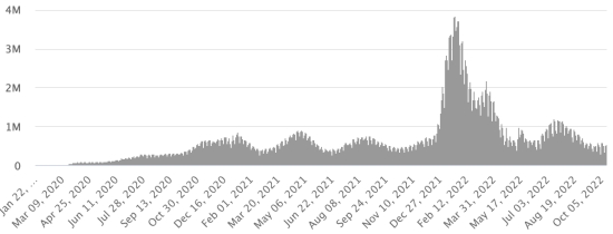 Vaccination: 12.85 billion doses of vaccine injected (+10 million). (Latest data available). HAITI: Warning: The Ministry of Public Health and Population (MSPP) did not make available after September 23, 2022 daily data on the Covid-19 situation in Haiti. Due to the climate of violence and insecurity in Haiti, it has become very difficult, if not impossible, for the teams of the Ministry of Health to carry out screening and publish complete and regular situation reports. As a result, the data below on the situation in Haiti is the latest available. According to the Ministry of Public Health, +5 new cases of Covid-19 and its variants have been confirmed in Haiti as of September 23, 2022 (latest partial data available ) for a total of 33,761 confirmed cases throughout the national territory (48.8% women and 51.2% men), since the first case (March 19, 2020 https://www.haitilibre.com/en/news-30319-haiti-health-origin-of-the-first-2-cases-of-covid-19-in-haiti.html ). Previous update (+35 cases as of September 20, 2022). Healings: 31,432 (+22) Cure rate: 93.10% (+) Deaths: 857 deaths (+0) Death rate: 2.53% (=) Screening since the start of the pandemic: 221,823 tests since March 19, 2020 (+145 in 3 days) a quantity of tests for the entire national territory, statistically insufficient to be representative of the health situation , which results in a number of daily confirmed cases that is largely underestimated in the opinion of health specialists. TOP 5 of the most affected municipalities in the West (2022): Delmas: 1.251 (+0); Petion-ville 1.117 (+0); Port au Prince 645 (+0); Tabarre 515 (+0); Croix-des-Bouquets 435 (+0) Confirmed cases by department (2022 / 2021 / 2020): West: 2022: 4,434 (+) cases; (2021: 9.890); (2020: 6,945 cases) North: 2022: 393 (=) cases; (2021: 664); (2020: 677 cases) Center: 2022: 427 (=) cases; (2021: 1.001); (2020: 508 cases) Artibonite: 2022: 400 (=) cases; (2021: 855); (2020: 593 cases) Northeast: 2022: 280 (=) cases; (2021: 404); (2020: 314 cases) Southeast: 2022: 384 (=) cases; (2021: 768); (2020: 274 cases) South: 2022: 332 (+) cases; (2021: 891); (2020: 262 cases) North West: 2022: 442 (=) cases; (2021: 383); (2020: 229 cases) Grand'Anse: 2022: 307 (=) cases; (2021: 861); (2020: 176 cases) Nippes: 2022: 137 (+) cases; (2021: 249) (2020: 149 cases) Cumulative deaths by department (2022-2021): West: 303 deaths (2020: 104 deaths) North: 54 deaths (2020: 34 deaths) Center: 91 deaths (2020: 13 deaths) Artibonite: 43 deaths (2020: 39 deaths) North East: 7 deaths (2020: 6 deaths) South: 51 deaths (2020: 6 deaths) Southeast: 15 deaths (2020: 9 deaths) North West: 16 deaths (2020: 12 deaths) Grand'Anse: 7 deaths (2020: 13 deaths) Nippes: 27 deaths (2020: 5 deaths) Distribution of deaths by age (since the start of the epidemic): 0-9 years: 16 deaths 10-19 years: 11 deaths 20-29 years: 33 deaths 30-39 years: 58 deaths 40-49 years: 82 deaths 50-59 years: 137 deaths 60-69 years: 191 deaths 70-79 years: 189 deaths 80 years and over: 140 deaths Vaccination: 361,212 Haitians (3.11% of the population) +2,307 in 8 days have received a 1st dose of vaccine since July 16, 2021, date of the first injection through 149 open vaccination centers and 222,303 Haitians are fully vaccinated (2 doses, 1.91% of the population) +658 in 8 days. Update September 20, 2022 latest information available (source MSPP). List of the 149 Vaccination centers open in Haiti (and hours) by department: (updated October 20, 2021, latest information available) DIASPORA: Epidemiological situation: USA: *Cases since the first case (February 29, 2020): 98,779,943 cases (+52,807 in 24h), previous (+118,705 in 24h) *Healings: 95,997,599 healings (+73,064 in 24h), previous (+68,528 in 24h) National Cure Rate: 97.18% (+) *Deaths: 1,089,916 deaths (+531 in 24 hours), previous (+914 in 24 hours) Mortality rate: 1.10% (=) *Active cases (minus deaths and recoveries): 1,692,428 cases (-20,788 in 24 hours), previous (+49,263 in 24 hours) USA: Trend active cases: (minus recoveries and deaths)