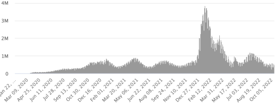 Vaccination: 12.93 billion doses of vaccine injected (+80 million / upgrade). (Latest data available). HAITI: Warning: The Ministry of Public Health and Population (MSPP) did not make available after September 23, 2022 daily data on the Covid-19 situation in Haiti. Due to the climate of violence and insecurity in Haiti, it has become very difficult, if not impossible, for the teams of the Ministry of Health to carry out screening and publish complete and regular situation reports. As a result, the data below on the situation in Haiti is the latest available. According to the Ministry of Public Health, +5 new cases of Covid-19 and its variants have been confirmed in Haiti as of September 23, 2022 (latest partial data available ) for a total of 33,761 confirmed cases throughout the national territory (48.8% women and 51.2% men), since the first case (March 19, 2020 https://www.haitilibre.com/en/news-30319-haiti-health-origin-of-the-first-2-cases-of-covid-19-in-haiti.html ). Previous update (+35 cases as of September 20, 2022). Healings: 31,432 (+22) Cure rate: 93.10% (+) Deaths: 857 deaths (+0) Death rate: 2.53% (=) Screening since the start of the pandemic: 221,823 tests since March 19, 2020 (+145 in 3 days) a quantity of tests for the entire national territory, statistically insufficient to be representative of the health situation , which results in a number of daily confirmed cases that is largely underestimated in the opinion of health specialists. TOP 5 of the most affected municipalities in the West (2022): Delmas: 1.251 (+0); Petion-ville 1.117 (+0); Port au Prince 645 (+0); Tabarre 515 (+0); Croix-des-Bouquets 435 (+0) Confirmed cases by department (2022 / 2021 / 2020): West: 2022: 4,434 (+) cases; (2021: 9.890); (2020: 6,945 cases) North: 2022: 393 (=) cases; (2021: 664); (2020: 677 cases) Center: 2022: 427 (=) cases; (2021: 1.001); (2020: 508 cases) Artibonite: 2022: 400 (=) cases; (2021: 855); (2020: 593 cases) Northeast: 2022: 280 (=) cases; (2021: 404); (2020: 314 cases) Southeast: 2022: 384 (=) cases; (2021: 768); (2020: 274 cases) South: 2022: 332 (+) cases; (2021: 891); (2020: 262 cases) North West: 2022: 442 (=) cases; (2021: 383); (2020: 229 cases) Grand'Anse: 2022: 307 (=) cases; (2021: 861); (2020: 176 cases) Nippes: 2022: 137 (+) cases; (2021: 249) (2020: 149 cases) Cumulative deaths by department (2022-2021): West: 303 deaths (2020: 104 deaths) North: 54 deaths (2020: 34 deaths) Center: 91 deaths (2020: 13 deaths) Artibonite: 43 deaths (2020: 39 deaths) North East: 7 deaths (2020: 6 deaths) South: 51 deaths (2020: 6 deaths) Southeast: 15 deaths (2020: 9 deaths) North West: 16 deaths (2020: 12 deaths) Grand'Anse: 7 deaths (2020: 13 deaths) Nippes: 27 deaths (2020: 5 deaths) Distribution of deaths by age (since the start of the epidemic): 0-9 years: 16 deaths 10-19 years: 11 deaths 20-29 years: 33 deaths 30-39 years: 58 deaths 40-49 years: 82 deaths 50-59 years: 137 deaths 60-69 years: 191 deaths 70-79 years: 189 deaths 80 years and over: 140 deaths Vaccination: 361,212 Haitians (3.11% of the population) +2,307 in 8 days have received a 1st dose of vaccine since July 16, 2021, date of the first injection through 149 open vaccination centers and 222,303 Haitians are fully vaccinated (2 doses, 1.91% of the population) +658 in 8 days. Update September 20, 2022 latest information available (source MSPP). List of the 149 Vaccination centers open in Haiti (and hours) by department: (updated October 20, 2021, latest information available) DIASPORA: Epidemic situation : USA: *Cases since the first case (29 February 2020): 98,814,003 cases (+34,060 in 24h), previous (+52,807 in 24h) *Healings: 96,055,534 healings (+57,935 in 24h), previous (+73,064 in 24h) National Cure Rate: 97.20% (+) *Deaths: 1,090,289 deaths (+373 in 24 hours), previous (+531 in 24 hours) Mortality rate: 1.10% (=) *Active cases (minus deaths and recoveries): 1,668,180 cases (-24,248 in 24 hours), previous (-20,788 in 24 hours) USA: Trend active cases: (minus recoveries and deaths)