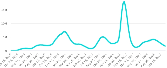 Vaccination: 12.93 billion doses of vaccine injected (+80 million / upgrade). (Latest data available). HAITI: Warning: The Ministry of Public Health and Population (MSPP) did not make available after September 23, 2022 daily data on the situation of the Covid-19 in Haiti. Due to the climate of violence and insecurity in Haiti, it has become very difficult, if not impossible, for the teams of the Ministry of Health to carry out screening and publish complete and regular situation reports. As a result, the data below on the situation in Haiti is the latest available. According to the Ministry of Public Health, +5 new cases of Covid-19 and its variants have been confirmed in Haiti as of September 23, 2022 (latest partial data available ) for a total of 33,761 confirmed cases throughout the national territory (48.8% women and 51.2% men), since the first case (March 19, 2020 https://www.haitilibre.com/en/news-30319-haiti-health-origin-of-the-first-2-cases-of-covid-19-in-haiti.html ). Previous update (+35 cases as of September 20, 2022). Healings: 31,432 (+22) Cure rate: 93.10% (+) Deaths: 857 deaths (+0) Death rate: 2.53% (=) Screening since the start of the pandemic: 221,823 tests since March 19, 2020 (+145 in 3 days) a quantity of tests for the entire national territory, statistically insufficient to be representative of the health situation , which results in a number of daily confirmed cases that is largely underestimated in the opinion of health specialists. TOP 5 of the most affected municipalities in the West (2022): Delmas: 1.251 (+0); Petion-ville 1.117 (+0); Port au Prince 645 (+0); Tabarre 515 (+0); Croix-des-Bouquets 435 (+0) Confirmed cases by department (2022 / 2021 / 2020): West: 2022: 4,434 (+) cases; (2021: 9.890); (2020: 6,945 cases) North: 2022: 393 (=) cases; (2021: 664); (2020: 677 cases) Center: 2022: 427 (=) cases; (2021: 1.001); (2020: 508 cases) Artibonite: 2022: 400 (=) cases; (2021: 855); (2020: 593 cases) Northeast: 2022: 280 (=) cases; (2021: 404); (2020: 314 cases) Southeast: 2022: 384 (=) cases; (2021: 768); (2020: 274 cases) South: 2022: 332 (+) cases; (2021: 891); (2020: 262 cases) North West: 2022: 442 (=) cases; (2021: 383); (2020: 229 cases) Grand'Anse: 2022: 307 (=) cases; (2021: 861); (2020: 176 cases) Nippes: 2022: 137 (+) cases; (2021: 249) (2020: 149 cases) Cumulative deaths by department (2022-2021): West: 303 deaths (2020: 104 deaths) North: 54 deaths (2020: 34 deaths) Center: 91 deaths (2020: 13 deaths) Artibonite: 43 deaths (2020: 39 deaths) North East: 7 deaths (2020: 6 deaths) South: 51 deaths (2020: 6 deaths) Southeast: 15 deaths (2020: 9 deaths) North West: 16 deaths (2020: 12 deaths) Grand'Anse: 7 deaths (2020: 13 deaths) Nippes: 27 deaths (2020: 5 deaths) Distribution of deaths by age (since the start of the epidemic): 0-9 years: 16 deaths 10-19 years: 11 deaths 20-29 years: 33 deaths 30-39 years: 58 deaths 40-49 years: 82 deaths 50-59 years: 137 deaths 60-69 years: 191 deaths 70-79 years: 189 deaths 80 years and over: 140 deaths Vaccination: 361,212 Haitians (3.11% of the population) +2,307 in 8 days have received a 1st dose of vaccine since July 16, 2021, date of the first injection through 149 open vaccination centers and 222,303 Haitians are fully vaccinated (2 doses, 1.91% of the population) +658 in 8 days. Update September 20, 2022 latest information available (source MSPP). List of the 149 Vaccination centers open in Haiti (and hours) by department: (updated October 20, 2021, latest information available) DIASPORA: Epidemiological situation : USA: *Cases since the first case (29 February 2020): 98,877,887 cases (+27,762 in 24h), previous (+24,484 in 24h) *Healings: 96,231,184 healings (+62,831 in 24h), previous (+62,810 in 24h) National Cure Rate: 97.32% (+) *Deaths: 1,090,802 deaths (+266 in 24 hours), previous (+162 in 24 hours) Mortality rate: 1.10% (=) *Active cases (minus deaths and recoveries): 1,555,901 cases (-35,335 in 24 hours), previous (-38,488 in 24 hours) USA: Trend active cases: (minus recoveries and deaths)