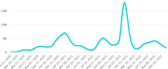 Vaccination: 12.93 billion doses of vaccine injected (+80 million / upgrade). (Latest data available). HAITI: Warning: The Ministry of Public Health and Population (MSPP) did not make available after September 23, 2022 daily data on the situation of the Covid-19 in Haiti. Due to the climate of violence, insecurity and lack of fuel in Haiti, it has become very difficult or even impossible for the teams of the Ministry of Health to carry out screening and publish complete and regular situation reports. As a result, the data below on the situation in Haiti is the latest available. According to the Ministry of Public Health, +5 new cases of Covid-19 and its variants have been confirmed in Haiti as of September 23, 2022 (latest partial data available ) for a total of 33,761 confirmed cases throughout the national territory (48.8% women and 51.2% men), since the first case (March 19, 2020 https://www.haitilibre.com/en/news-30319-haiti-health-origin-of-the-first-2-cases-of-covid-19-in-haiti.html ). Previous update (+35 cases as of September 20, 2022). Healings: 31,432 (+22) Cure rate: 93.10% (+) Deaths: 857 deaths (+0) Death rate: 2.53% (=) Screening since the start of the pandemic: 221,823 tests since March 19, 2020 (+145 in 3 days) a quantity of tests for the entire national territory, statistically insufficient to be representative of the health situation , which results in a number of daily confirmed cases that is largely underestimated in the opinion of health specialists. TOP 5 of the most affected municipalities in the West (2022): Delmas: 1.251 (+0); Petion-ville 1.117 (+0); Port au Prince 645 (+0); Tabarre 515 (+0); Croix-des-Bouquets 435 (+0) Confirmed cases by department (2022 / 2021 / 2020): West: 2022: 4,434 (+) cases; (2021: 9.890); (2020: 6,945 cases) North: 2022: 393 (=) cases; (2021: 664); (2020: 677 cases) Center: 2022: 427 (=) cases; (2021: 1.001); (2020: 508 cases) Artibonite: 2022: 400 (=) cases; (2021: 855); (2020: 593 cases) Northeast: 2022: 280 (=) cases; (2021: 404); (2020: 314 cases) Southeast: 2022: 384 (=) cases; (2021: 768); (2020: 274 cases) South: 2022: 332 (+) cases; (2021: 891); (2020: 262 cases) North West: 2022: 442 (=) cases; (2021: 383); (2020: 229 cases) Grand'Anse: 2022: 307 (=) cases; (2021: 861); (2020: 176 cases) Nippes: 2022: 137 (+) cases; (2021: 249) (2020: 149 cases) Cumulative deaths by department (2022-2021): West: 303 deaths (2020: 104 deaths) North: 54 deaths (2020: 34 deaths) Center: 91 deaths (2020: 13 deaths) Artibonite: 43 deaths (2020: 39 deaths) North East: 7 deaths (2020: 6 deaths) South: 51 deaths (2020: 6 deaths) Southeast: 15 deaths (2020: 9 deaths) North West: 16 deaths (2020: 12 deaths) Grand'Anse: 7 deaths (2020: 13 deaths) Nippes: 27 deaths (2020: 5 deaths) Distribution of deaths by age (since the start of the epidemic): 0-9 years: 16 deaths 10-19 years: 11 deaths 20-29 years: 33 deaths 30-39 years: 58 deaths 40-49 years: 82 deaths 50-59 years: 137 deaths 60-69 years: 191 deaths 70-79 years: 189 deaths 80 years and over: 140 deaths Vaccination: 361,212 Haitians (3.11% of the population) +2,307 in 8 days have received a 1st dose of vaccine since July 16, 2021, date of the first injection through 149 open vaccination centers and 222,303 Haitians are fully vaccinated (2 doses, 1.91% of the population) +658 in 8 days. Update September 20, 2022 latest information available (source MSPP). List of the 149 Vaccination centers open in Haiti (and hours) by department: (updated October 20, 2021, latest information available) DIASPORA: Epidemiological situation: USA: *Cases since the first case (February 29, 2020): 98,987,014 cases (+79,267 in 24h), previous (+29,860 in 24h) *Healings: 96,335,228 healings (+41,524 in 24h), previous (+62,521 in 24h) National Cure Rate: 97.32% (-) *Deaths: 1,092,031 deaths (+945 in 24 hours), previous (+284 in 24 hours) Mortality rate: 1.10% (=) *Active cases (minus deaths and recoveries): 1,559,755 cases (+36,799 in 24 hours), previous (-32,945 in 24 hours) USA: Trend active cases: (minus recoveries and deaths)
