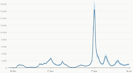 TOP 5 Provinces with the most new cases: (latest data available) Distrito Nacional: +21 new cases in 24 hours (-) Santo Domingo: +17 new cases in 24 hours (-) Santiago: +6 new cases in 24 hours (+) Espaillat: +2 new cases in 24 hours () Puerto Plata: 1 new cases () Vaccination: 16.07 million doses of vaccine injected since February 16, 2021, date of the first injection in the Dominican Republic (+10,000 doses). (Latest data available). QUEBEC: Confirmed cases since the first case (February 27, 2020): 1,217,963 cases (+1,104 in 24 hours), previous (+1,021 in 24 hours) Deaths: 16,915 deaths (+10 in 24 hours) previous (+16 in 24 hours) Death rate: 1.38% (=) Healing: The Center for Expertise and Reference in Public Health no longer makes this information available. Quebec: Number of daily confirmed cases: (7-day trend)