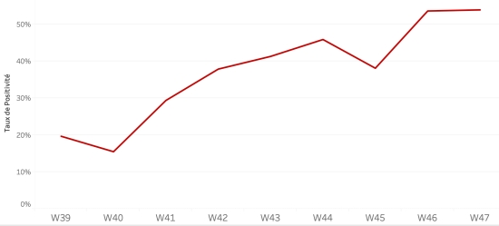 Distribution and deviations of suspected cases, total since October 3 (in 48 hours): Less than 1 year: +255 (+6) 1-4 years: 2,150 cases (-124) 5-9 years: 1,577 cases (-56) 10-14 years: 758 cases (-1) 15-19 years old: 561 cases (-13) 20-29 years old: 1,704 cases (-25) 30-39 years old: 1,683 cases (-26) 40-49 years old: 1,140 cases (-26) 50-59 years old: 766 cases (-3) 60-69 years old: 452 cases (-15) 70-79 years: 224 cases (-4) 80 and + () case () Men: 58.73% men (-); Women 41.27% (+) Positivity rate by age segment: