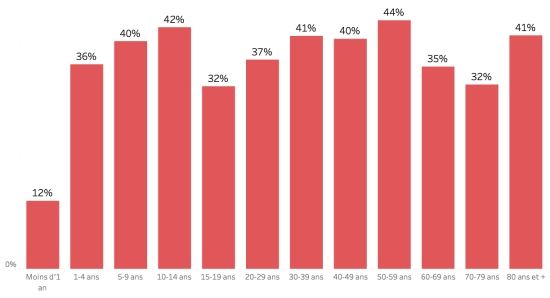 Distribution and deviations of suspected cases, total since October 3 (in 24 hours): Less than 1 year: +255(+6) 1-4 years: 2,272 cases (+39) 5-9 years: 1,655 cases (+23) 10-14 years: 808 cases (+8) 15-19 years old: 598 cases (+11) 20-29 years old: 1,815 cases (+27) 30-39 years old: 1,801 cases (+26) 40-49 years old: 1,235 cases (+29) 50-59 years old: 815 cases (+11) 60-69 years old: 484 cases (+7) 70-79 years old: 239 cases (+6) 80 and + (not available) case (not available) Men: 58.71% men (-); Women 41.29% (-) Positivity rate by age segment: